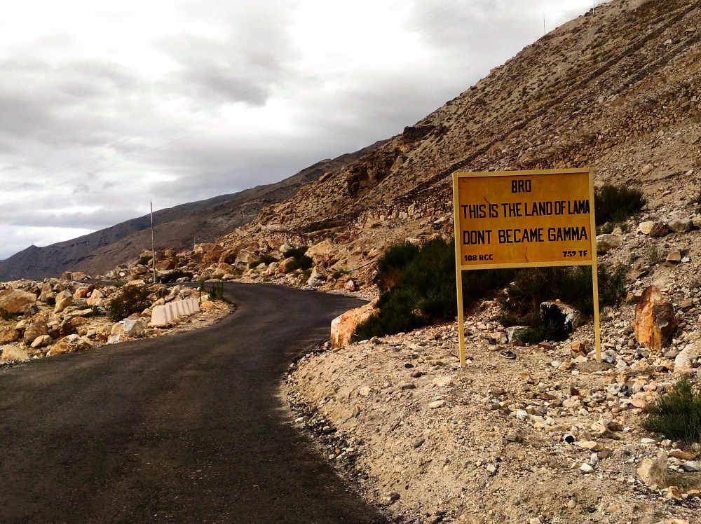 In the land of lama, don’t be a gamma. A sage advice given by those that build and maintain roads in these cold, barren lands. Whoever has travelled to the distant high mountains of Ladakh and Spiti have seen these cautionary yellow boards with advice written in black by the BRO, asking drivers to be careful. While being a ‘gamma’ on these rough roads would ensure that the ‘gamma driver’ receives a quick free ride to the land of the dead, the ‘Lama-Land’ by itself is a beautiful and colourful one, with majestic natural landscapes. Here one cannot miss the innumerable pretty chortens that dot the landscape; and gaily fluttering flags with their printed mantras that brighten up houses, farms, mountain passes, and water bodies. I had once asked a Ladakhi about the flags, and was told how the symbolic flags carry powerful mantras that spread far and wide with the winds, warding off evil. As I stood beside the blue waters of the Pangong tso listening to him talk on Buddhist philosophies, I decided to dig deeper once back home and find out more on Tibetan cultural practices.