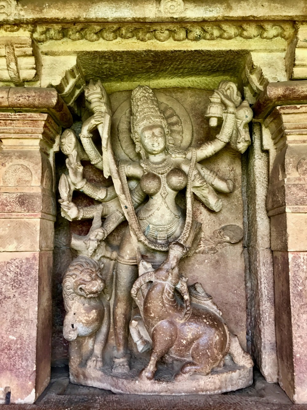 Durga in her Mahishasuramardini form, while being present in iconography from the pre-Kushana period, became popular in Hindu temple iconography mainly from the Gupta period in eastern India, from where it rapidly spread to all parts of the country and even to foreign lands.