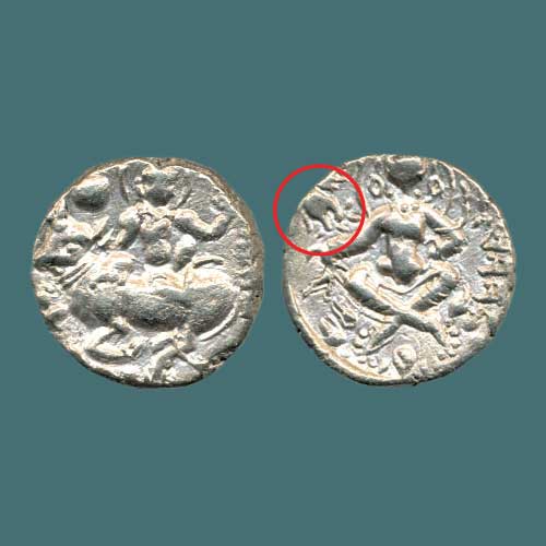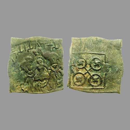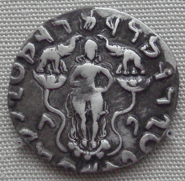 Sri-Lakshmi is one of the earliest deities in Indian iconography to be found frequently on tribal coins as Gaja Lakshmi, where she is shown standing (rarely seated) being bathed by two elephants. This devi was so popular that she is seen on the coins of both Indian and non-native rulers of northern India in ancient era. Gaja Lakshmi appears on an inscribed coin from 3rd c. BCE coin found in Kausambi, coins of Ujjayini (2nd-3rd c. BCE), coins of Visakhadeva, Sivadatta, and Vayudeva of Ayodhya (1st c. BCE). Many rulers of foreign origin like Azilises, Rajuvala, and Sodasa also used this devi as a motif on their coins. In central Indian many early monuments show the devi in this form in their relief carvings, thus showing a close connection between the sculptural and numismatic representations of the devi. This motif (gaja-Lakshmi) symbolises the Indian idea of prosperity and wealth, and is still held in great reverence among the Indics.