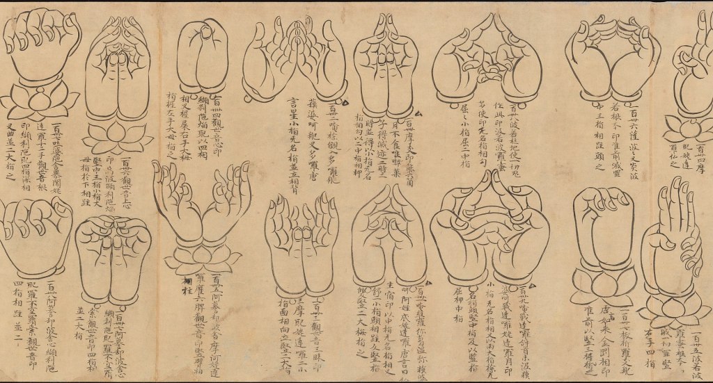 12th-century Japanese scroll showing different mudra gestures