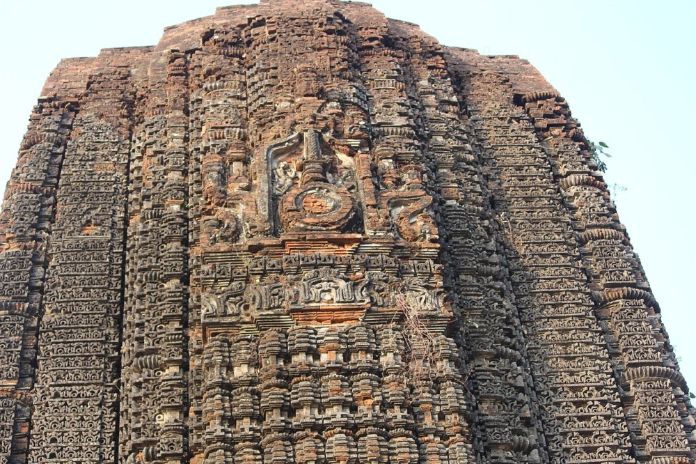 A study of the rekha deul temples of Bengal shows that they were related to the earlier group of Odishan temples, such as the Parasurameswara, Mukteswara, etc. Interestingly these early group of Odishan temples were closer to the old archetypes of the Gupta and post Gupta periods, and different from the Kalingan architectural style ( a regional variation of the nagara form) that developed later, as seen in the famous Lingaraja temple in Bhubaneswara temple. Another unique feature is that majority of the Bengal temples have a single element , the deul proper, with ony few showing a mandapa in front in jagamohan style. Instead the Bengal temples had accomadated an approach vestibule in the thickness of the front wall (common in the Himalayan temples, an architectural feature carried across from Bengal), which formed the entryway into the temple.