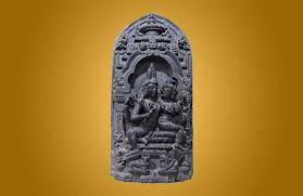 Uma Maheswara from Birol, Rajshahi (Bangladesh). Note the deities sit inside a temple framed beautifully within a carved doorway with a trefoil arch. On top is a 3 tiered roof (shown by 3 slabs/lines on each side of the trefoil arch), with an amalaka and the usual finials on top. Thus the scultpure shows the tiered temple type that was once prevlent in ancient to medieval Bengal.