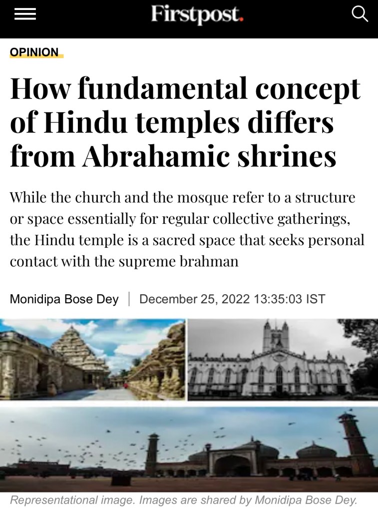 How fundamental concept of Hindu temples differs from Abrahamic shrines